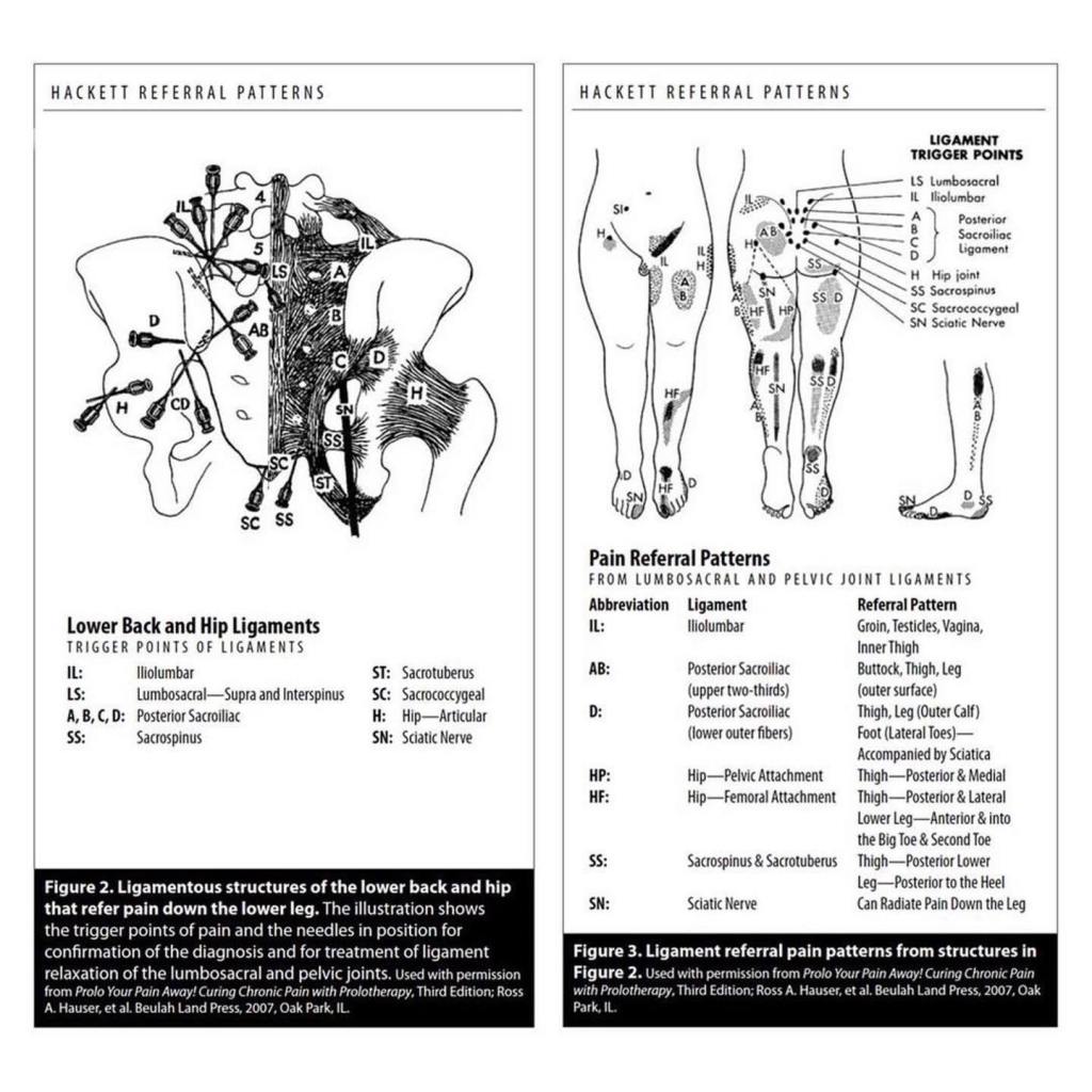 Hackett、Hemwall、Hauser三位醫師提出了這些韌帶與傳導痛的區域。對於傳統下背痛的患者,在手術前,透過增生注射,修復韌帶如果能夠降低疼痛與改善生活品質,那對於患者是非常幸福的一件事情。