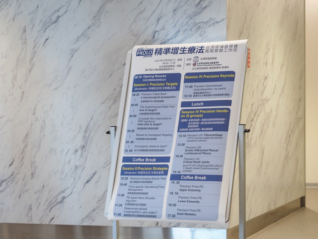 感謝疼痛醫學會與台北榮總復健部的邀請,唐宗詠醫師與劉炳塘醫師受邀於上週六(2022/10/31)假台北榮總醫療創新中心舉辦"精準增生療法-高階實作工作坊"擔任講者與實作小組導師。