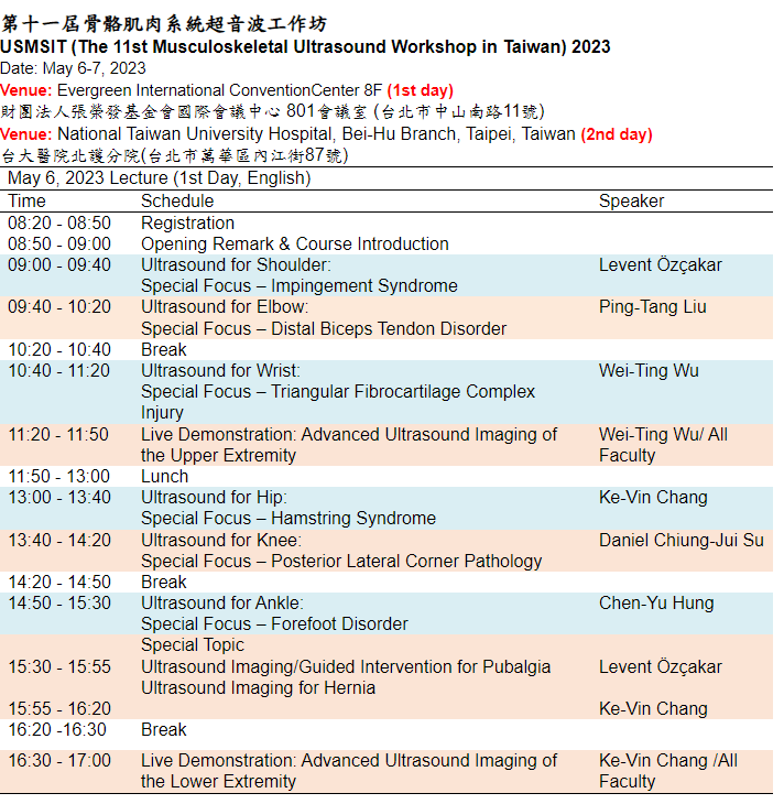 感謝臺大醫院張凱閔教授再次邀請,劉炳塘院長於2023/05/06-07日假張榮發基金會與台大醫院北護分院參與今年的超音波工作坊的講者與小組講師。今年除了疫情過去,許多之前無法來台灣參與的海外講者跟海外學員都回鍋參與之外,張凱閔教授更是為每個主題定了Special Focus, 讓每次來參與的學員都能學到新東西。
