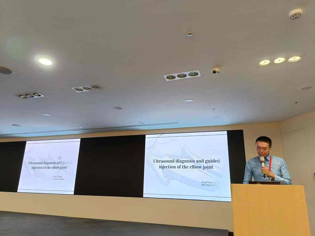 感謝臺大醫院北護分院張凱閔教授再次熱情邀請,劉炳塘院長於2025年5月10日參與第十三屆USMSIT 國際工作坊,擔任主題講者與小組實作課程的教學講師。此次工作坊特別令人期待且感動的是,來自土耳其的Levent教授除了肩膀的常見構造之外,也帶來了術後骨骼肌肉超音波的觀察重點。同時,也有來自泰國、香港、印尼、菲律賓等地的國際學員參與,讓課堂交流更具多元視角與文化激盪,呈現出真正的跨國醫學教育合作。今年的特別演講則是邀請潘健理院長分享逐漸進化的針型關節鏡與超音波導引的未來展望,相信不久後增生/再生醫學會再次迎來下一世代的革新。
